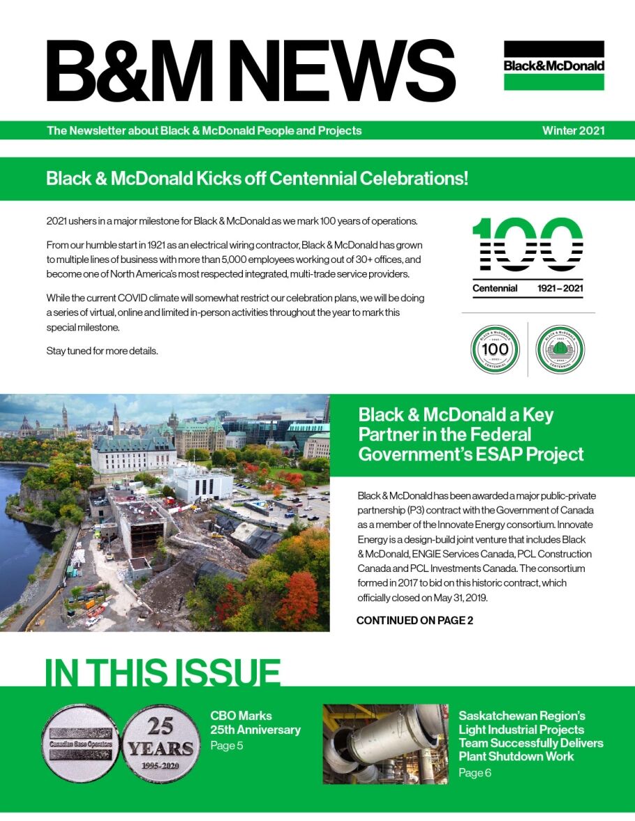 Black & McDonald Kicks off Centennial Celebrations! / Black & McDonald a Key Partner in the Federal Government’s ESAP Project
